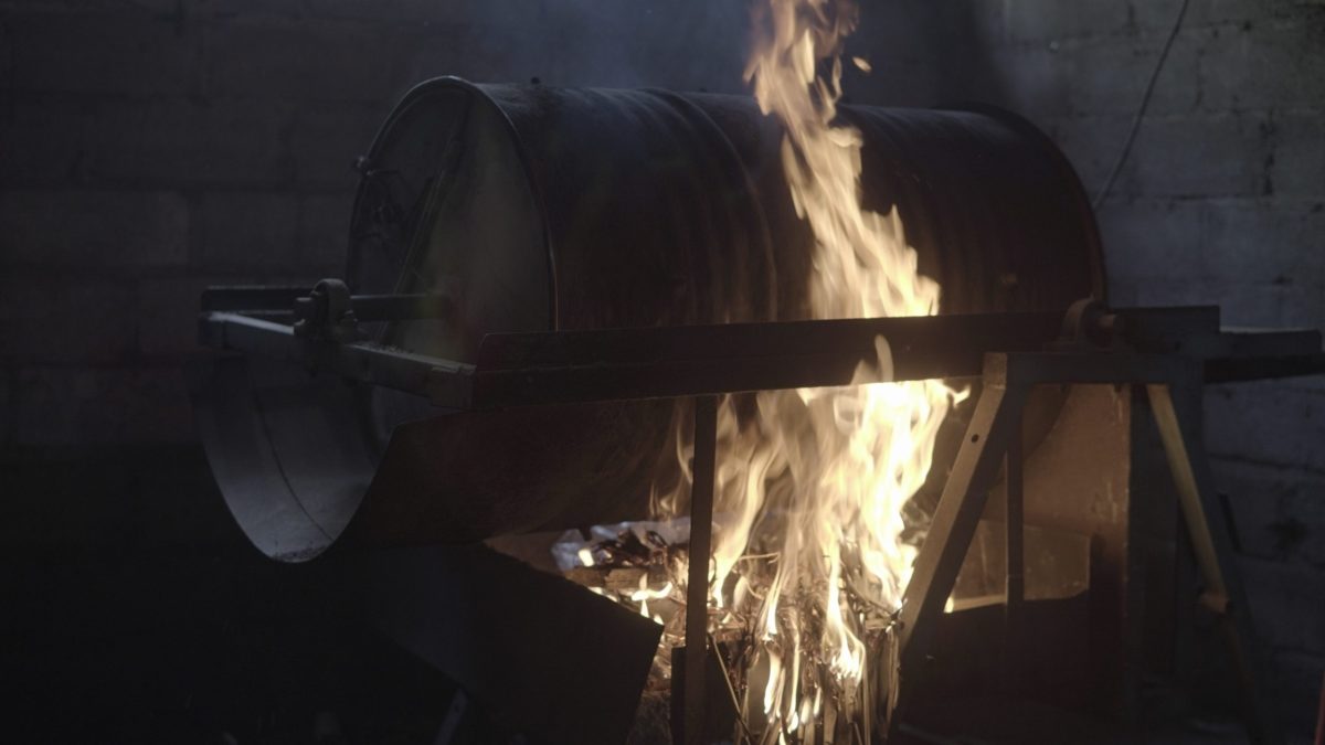 Kacang tanah disangrai dengan cara dipanaskan dalam pasir yang sudah panas, bukan digoreng dengan minyak.